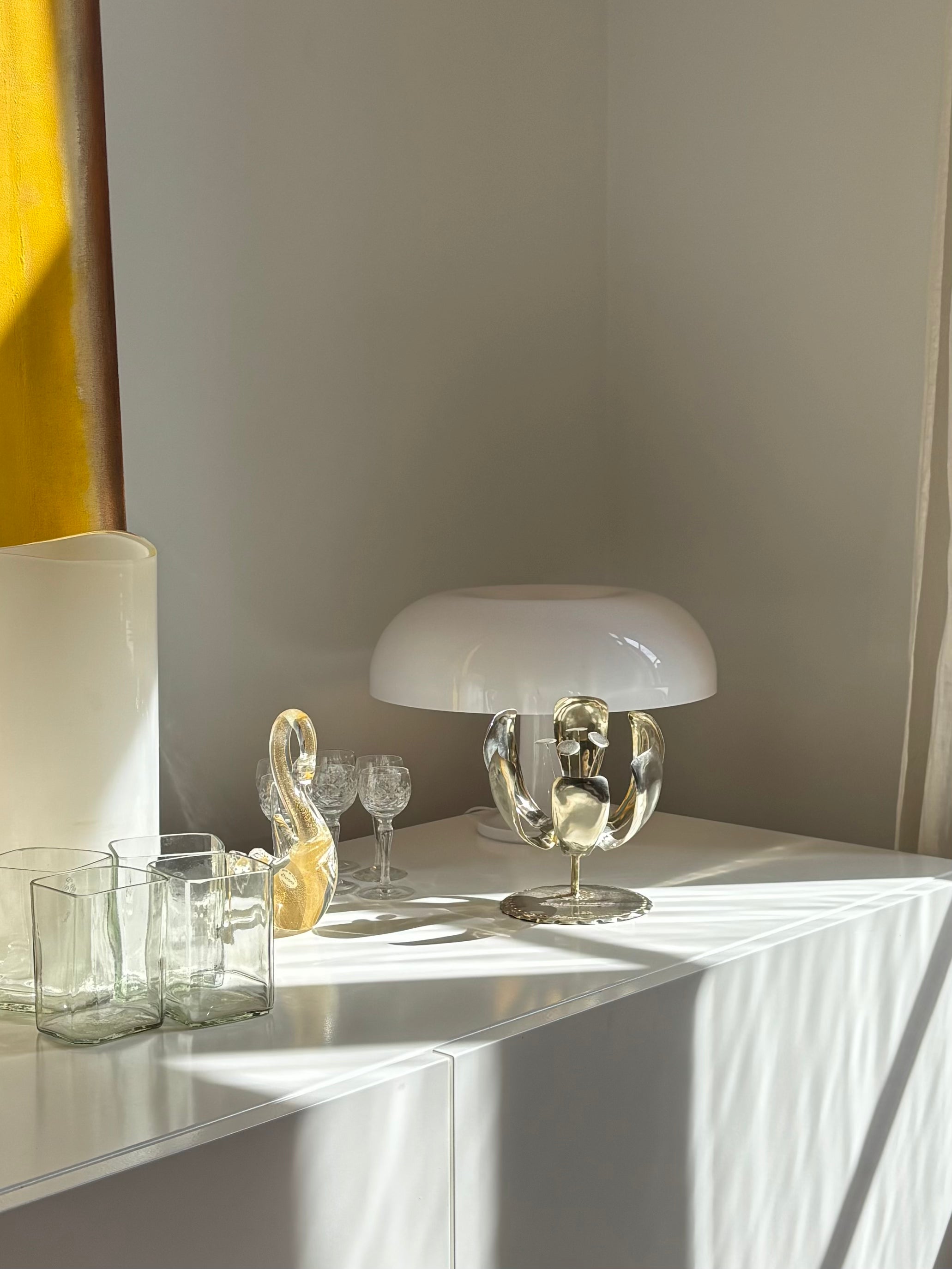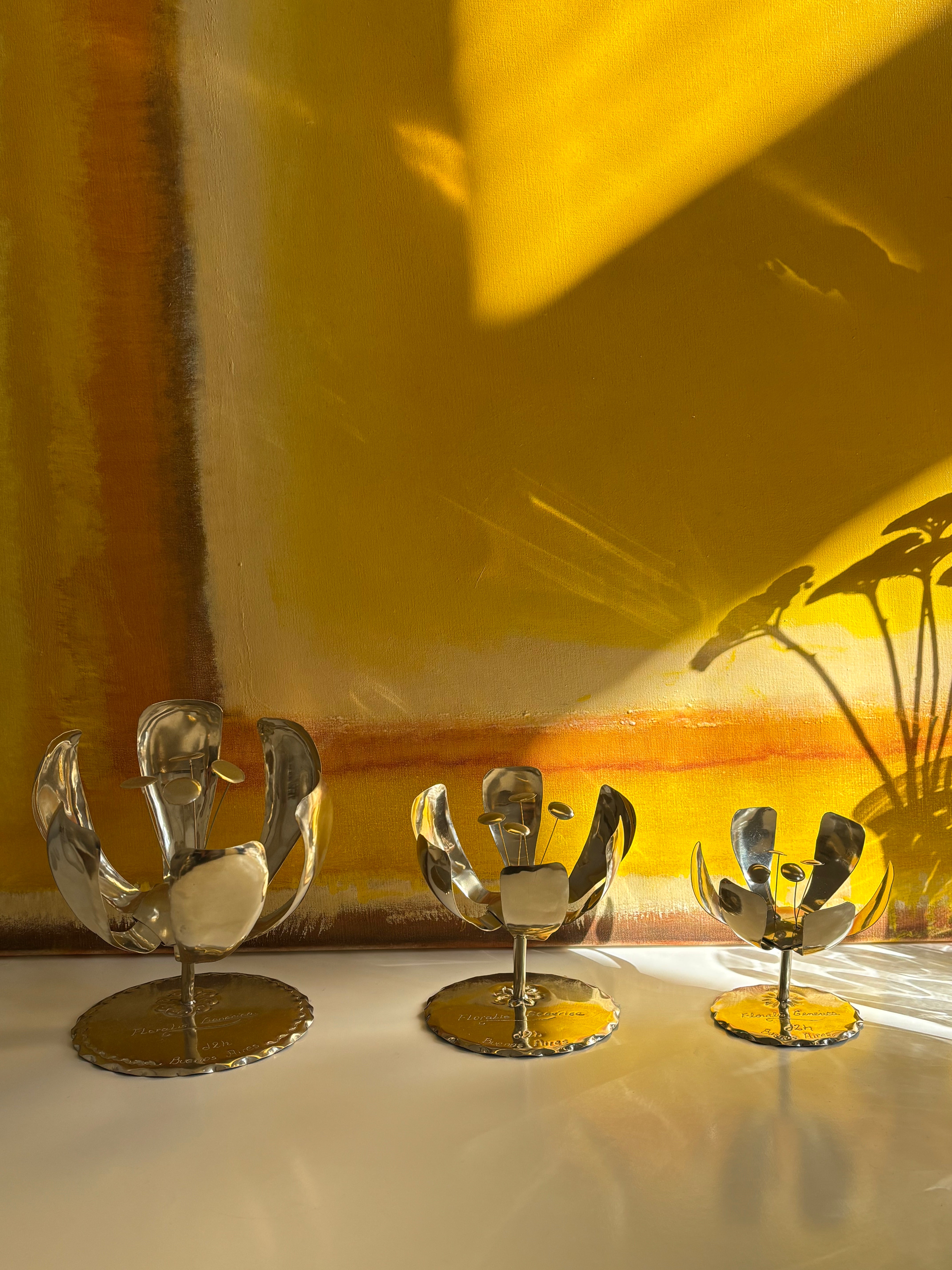 Una escultura miniatura de la iconica floralis genérica ubicada en la Ciudad de Buenos Aires