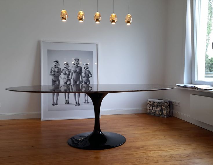 Mesa tulipdiseñada por Eero Saarinen: estructura de hierro fundido laqueado blanco o negro (satinado o mate)